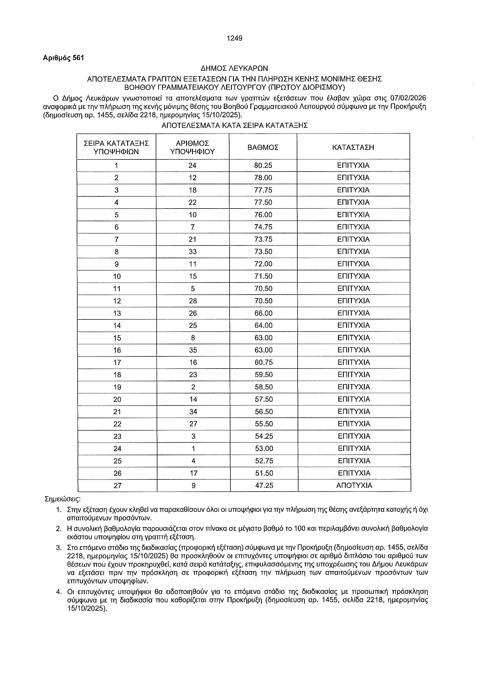 Super User ΑΠΟΤΕΛΕΣΜΑΤΑ ΓΡΑΠΤΩΝ ΕΞΕΤΑΣΕΩΝ ΓΙΑ ΤΗΝ ΠΛΗΡΩΣΗ ΚΕΝΗΣ ΜΟΝΙΜΗΣ ΘΕΣΗΣ ΒΟΗΘΟΥ ΓΡΑΜΜΑΤΕΙΑΚΟΥ ΛΕΙΤΟΥΡΓΟΥ